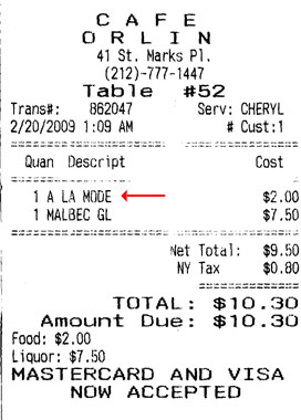 When Todd received this receipt at an Manhattan tea shop, he got really excited for a certain segment of his fan base: filthy, disgusting potheads. He imagined how excited two filthy, disgusting potheads would be if they saw a receipt that said “pot for two.” They would do the pothead equivalent of “high-fiving,” which is probably high-fiving.
